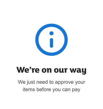 - 'Someone is coming to help you' - the 'help you' is quite vague, because for most customers, they don't need help at this point, they just want their items approved so they can pay